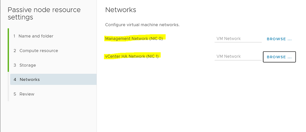 Select virtual machine Management (NIC 0) and vCenter HA (NIC 1) networks.If there