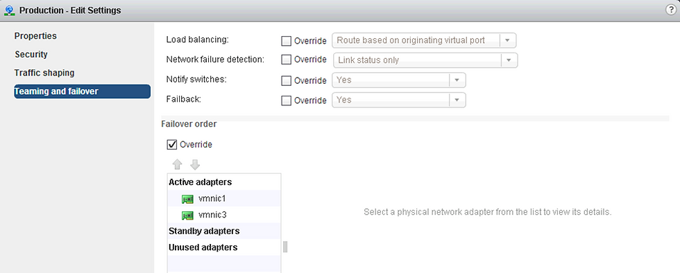 Traffic-Shaping Policy NIC Teaming Policy