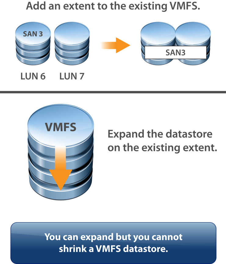 The below diagram will give you more insight on infrastructure w.r.t how storage and its components interconnected with each other in VMware Infra.