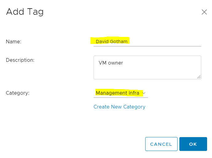 In this case, I assign vCenter object to john Mathew as an VM Owner under management Infra. you may create many more tags and categories as per your infra.